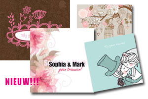 - 21 x 9,5 cm: dit is een enkele kaart die dubbelzijdig bedrukt is en soms met afscheurrandje (als een ticket). Een leuk extraatje die je trouwkaart nog opvallender maakt...