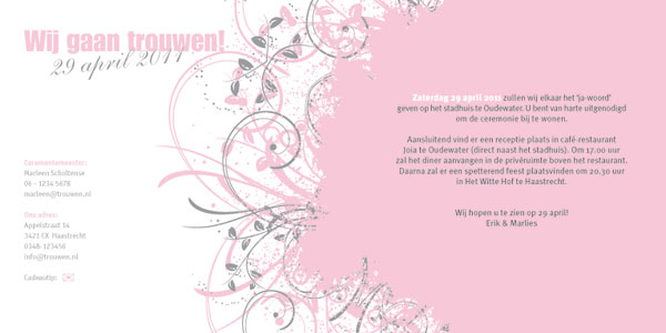 Buitenkant trouwkaart (links=achter, rechts=voor)